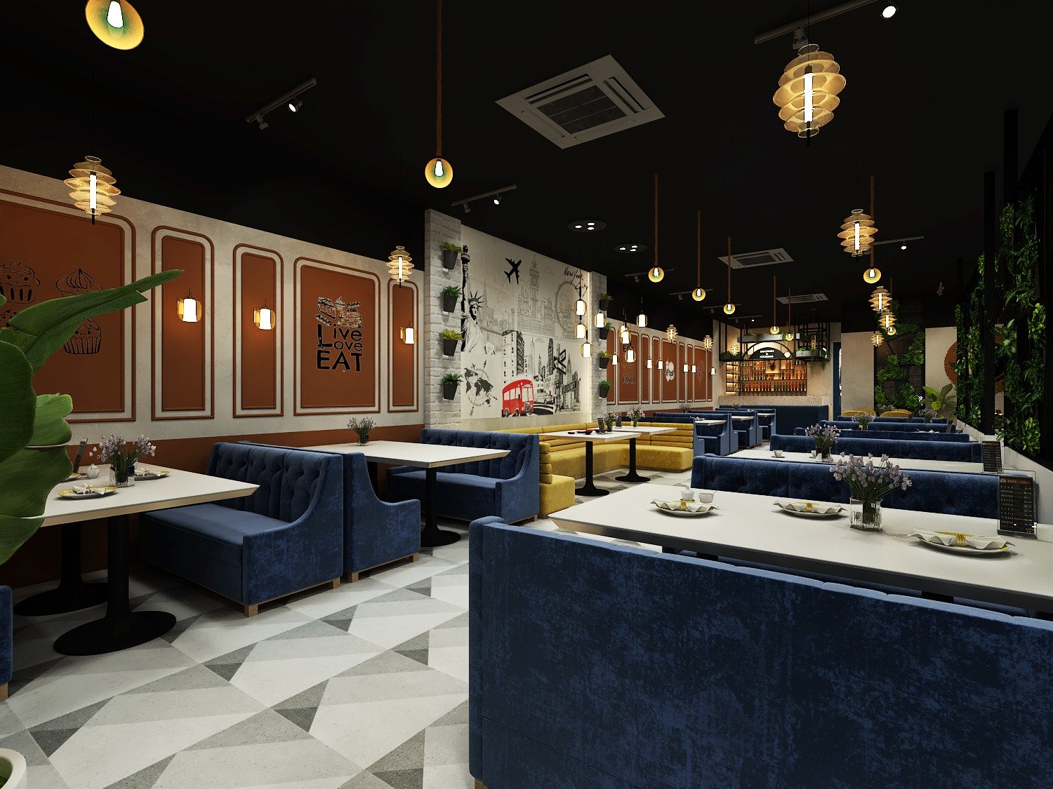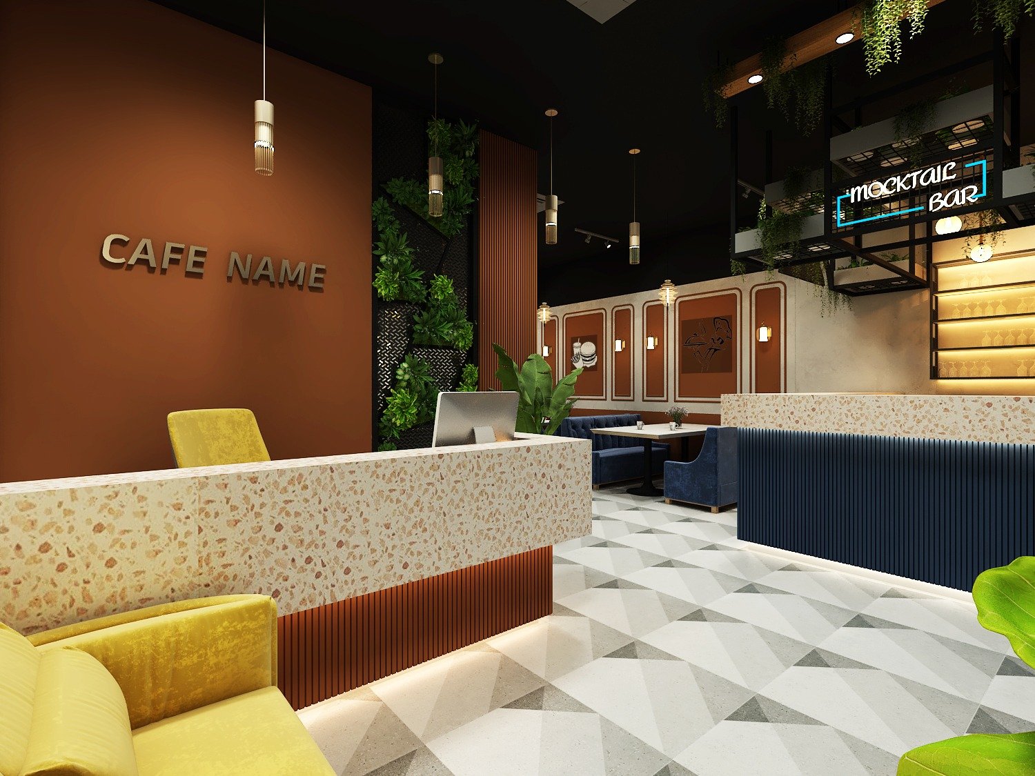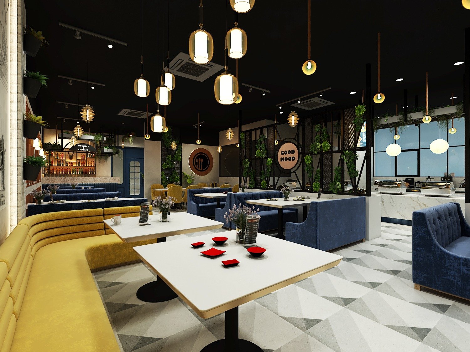 Designed with a stylish blend of modern décor and warm lighting, creating a welcoming atmosphere.